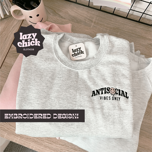 ANTISOCIAL VIBES Pink Embroidered Crewneck Sweatshirt