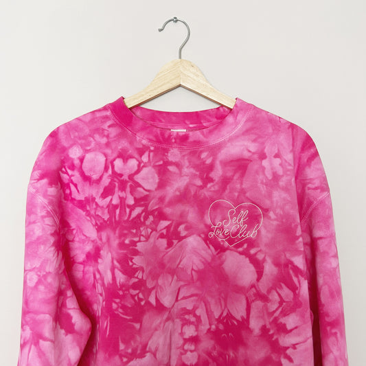 SELF LOVE CLUB Embroidered Pink Tie Dye Sweatshirt