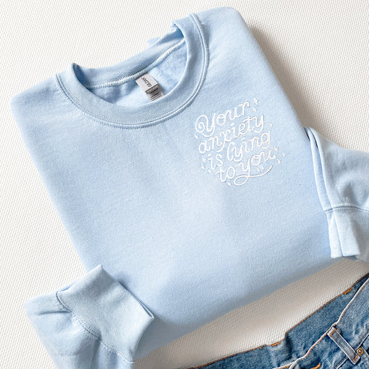 YOUR ANXIETY IS LYING TO YOU - Baby Blue Crewneck Sweatshirt