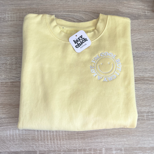 I'M COOL BUT I CRY A LOT Light Yellow Crewneck Sweatshirt